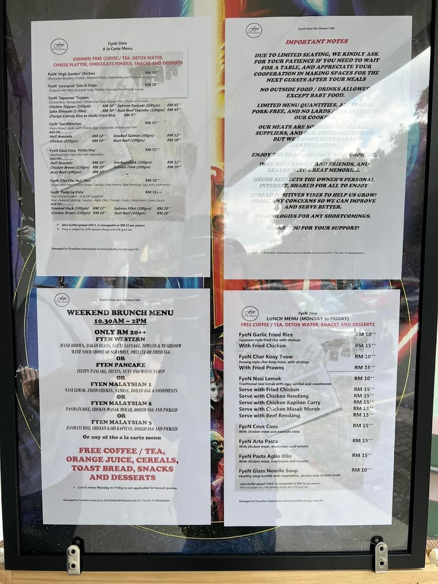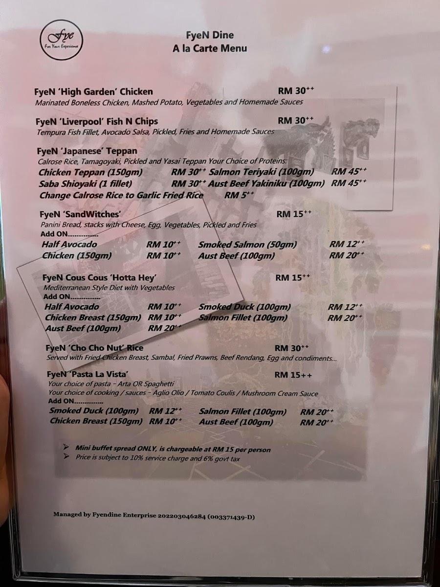 Welcome to FyeN Dine, The Theme Cafe, a unique culinary haven in Subang Jaya, Malaysia. This charming cafe offers a menu that celebrates the fusion of taste and creativity, with standout dishes like the FyeN Osaka Chicken Teppanyaki and FyeN Sauron Seabass.